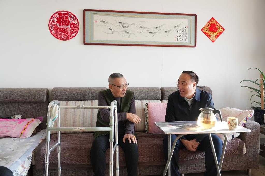 12月30日上午,劉峰來到離休干部孫貴卿家中與老人親切交談,詳細(xì)詢問其生活狀況、身體情況及家庭生活實際需求,認(rèn)真傾聽他對學(xué)校發(fā)展的想法和建議,對孫貴卿為學(xué)校建設(shè)發(fā)展作出的貢獻(xiàn)表示感謝。劉峰叮囑孫貴卿要保重身體,保持樂觀心態(tài),有困難及時向?qū)W校反映,同時要求隨行人員,要始終把老干部的冷暖放在心上,在生活上給予更多關(guān)心與照顧。