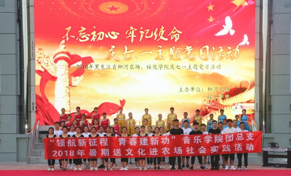 6月29日,為慶祝建黨97周年,音樂學(xué)院黨總支書記黃樹維帶領(lǐng)由13名教師黨員和53名同學(xué)組成的送文藝下鄉(xiāng)團(tuán)隊赴慶安縣柳河農(nóng)場開展送文藝下鄉(xiāng)志愿服務(wù)活動,與農(nóng)場工人共同慶祝黨的生日。