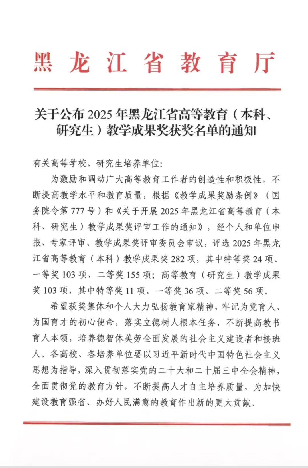 喜報:我校兩項成果榮獲2025年黑龍江省高等教育教學成果獎