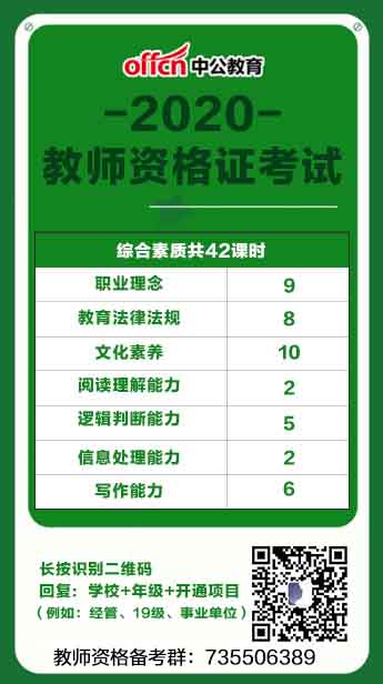 此課程名稱為系統(tǒng)精講班,包含42個課時,主要包含:職業(yè)理念、教育法律法規(guī)、文化素養(yǎng)、閱讀理解能力、邏輯判斷能力、信息處理能力、寫作能力。主要適合:準備考教師資格的考生。