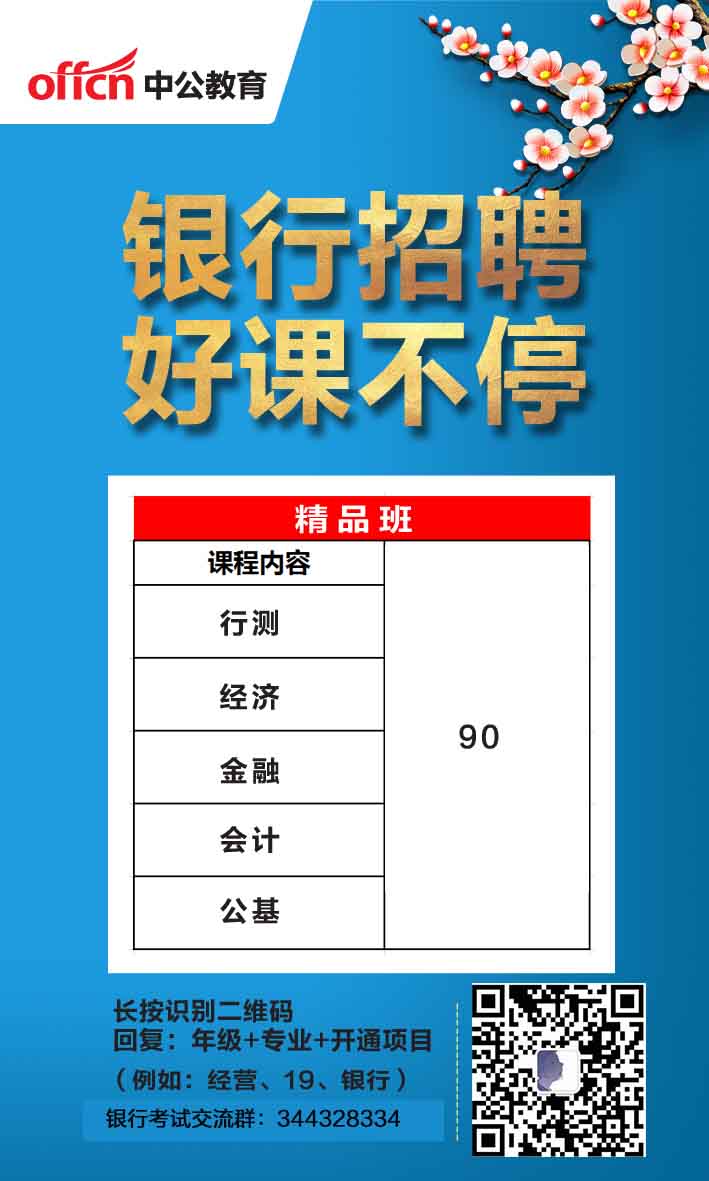 此課程名稱為銀行精品班,包含90個課時,主要包含:行測、經(jīng)濟、金融、會計、公基(附:計算機\市場營銷\管理\英語)。主要適合:準備考銀行招聘的考生。