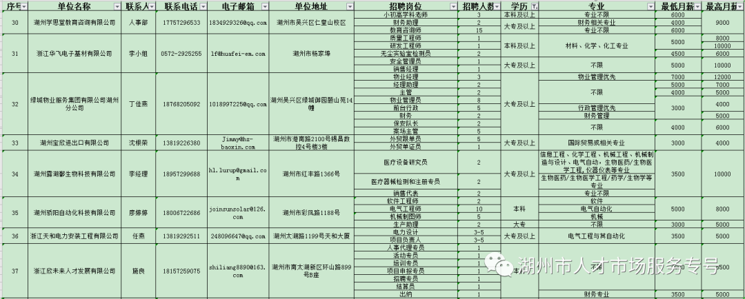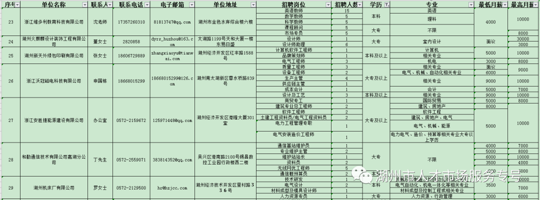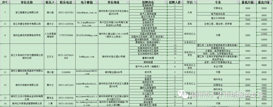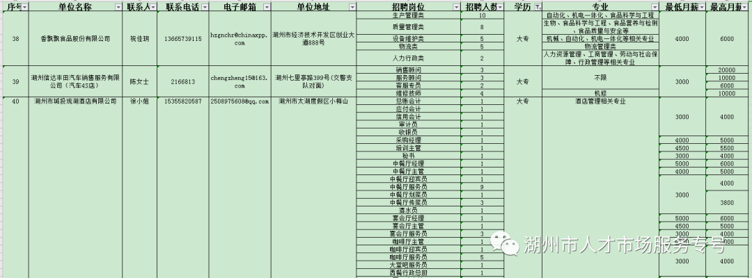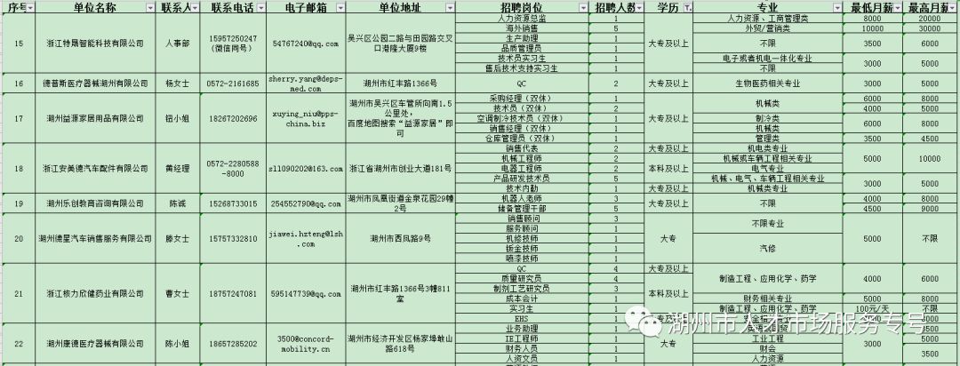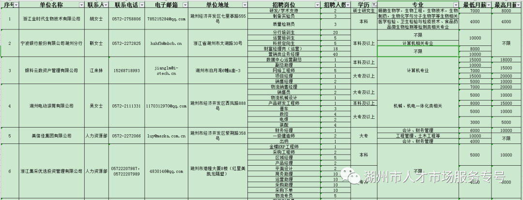 湖州市南太湖新區(qū)復(fù)工企業(yè)人才招聘崗位需求表