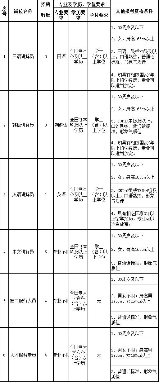 3. 服務人員須身體健康,體形端正,外觀無明顯疾病特征,無影響面容且難以治愈的皮膚病,無色覺異常,無紋身,無肢體功能障礙等,具有正常履行職責的身體條件;